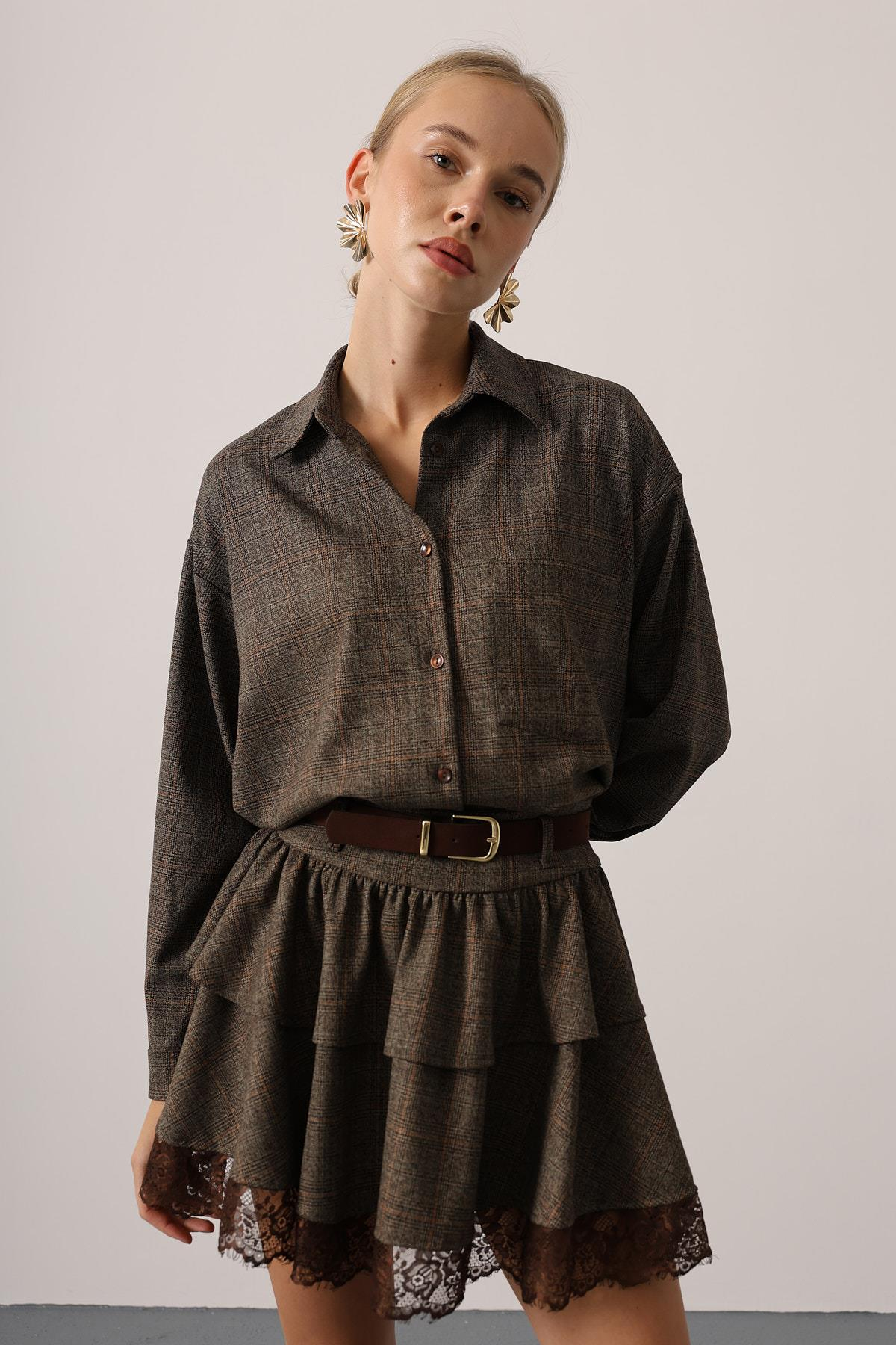 EKOSELİ OVERSİZE GÖMLEK - Kahve (34502)