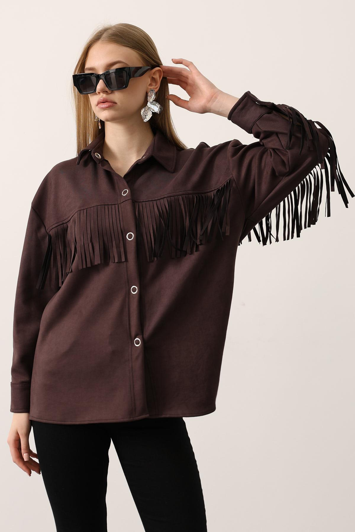 PÜSKÜL DETAYLI GÖMLEK - Kahve (934500)