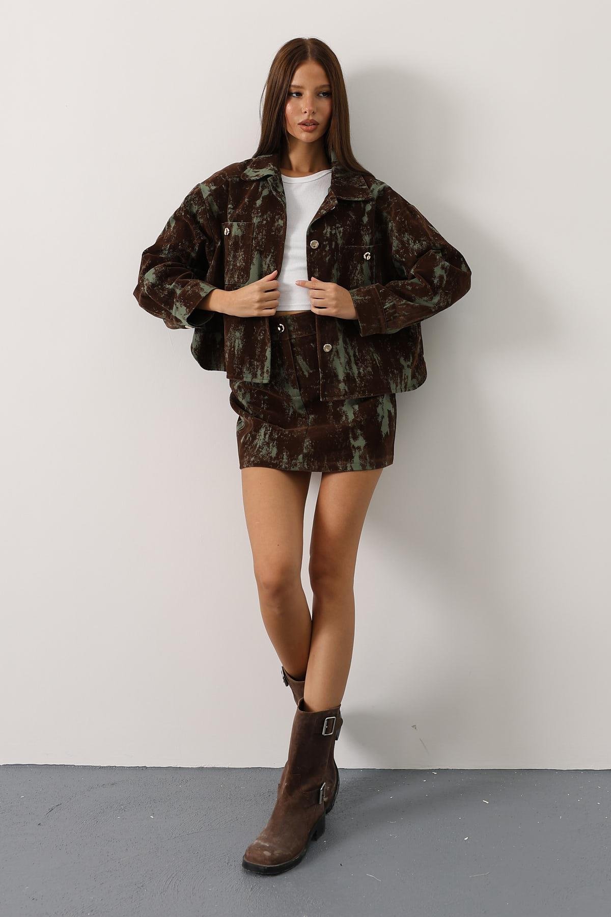 SÜET DOKULU ETEKLİ TAKIM - Yeşil (37172)